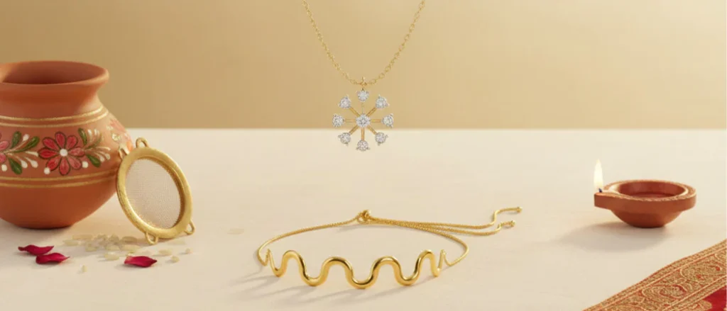 But let’s be real. The fast might be the heart of Karwa Chauth, but jewellery gifting has become its sparkle. Skipping it would be like celebrating Diwali and forgetting the lights — technically possible, but what’s the point? Husbands stepping up with the perfect piece of jewellery is what turns this day into a memory. And wives deserve more than just sweets or dry fruits for fasting without even a sip of water all day.